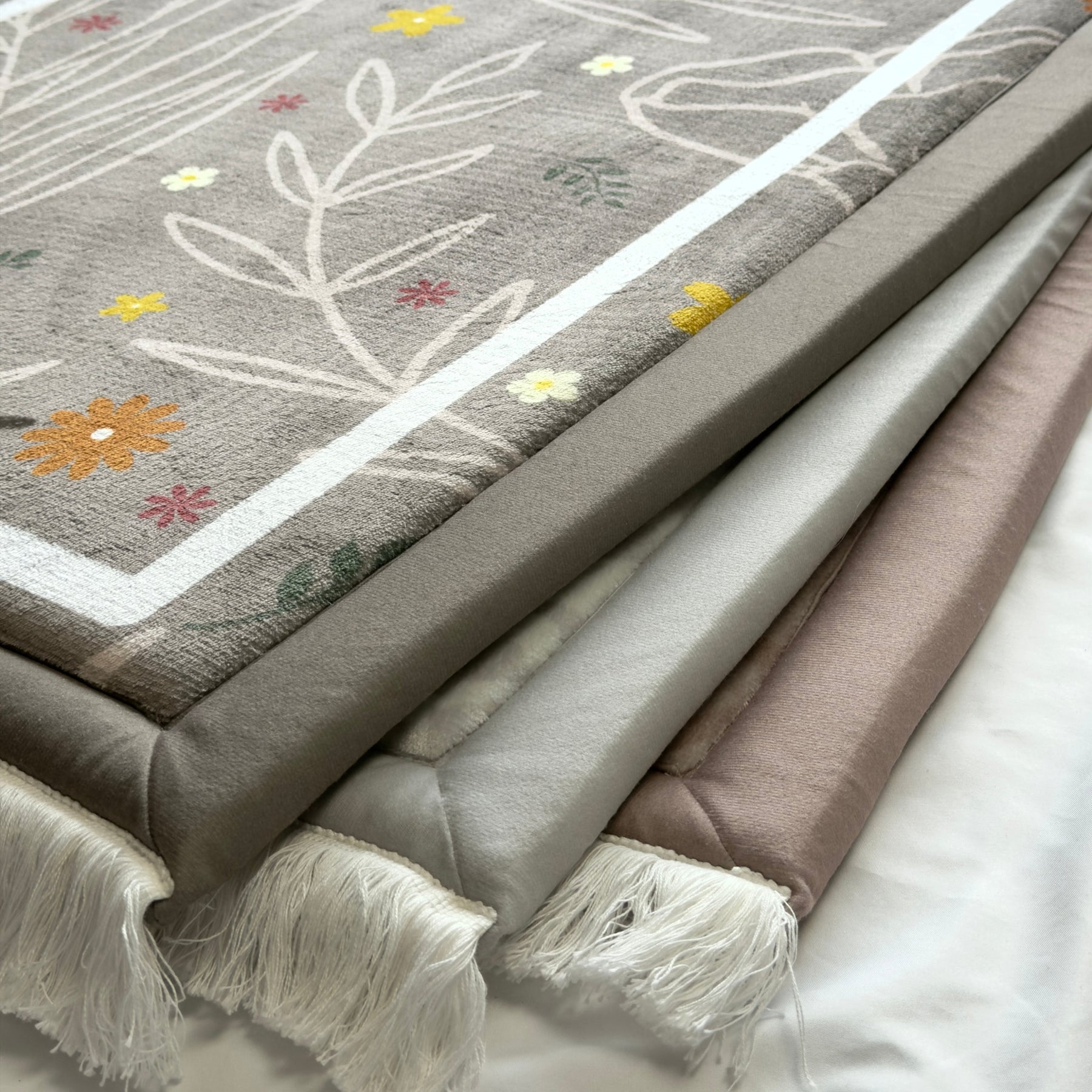 The Al-Haram Padded Prayer Mat is a cushioned Muslim prayer rug designed to support focus, reverence, and daily salah. Inspired by the sacred serenity of the Haramain, it offers a grounded and contemplative space for prayer. The 2cm cushioned padding provides gentle support through every movement.