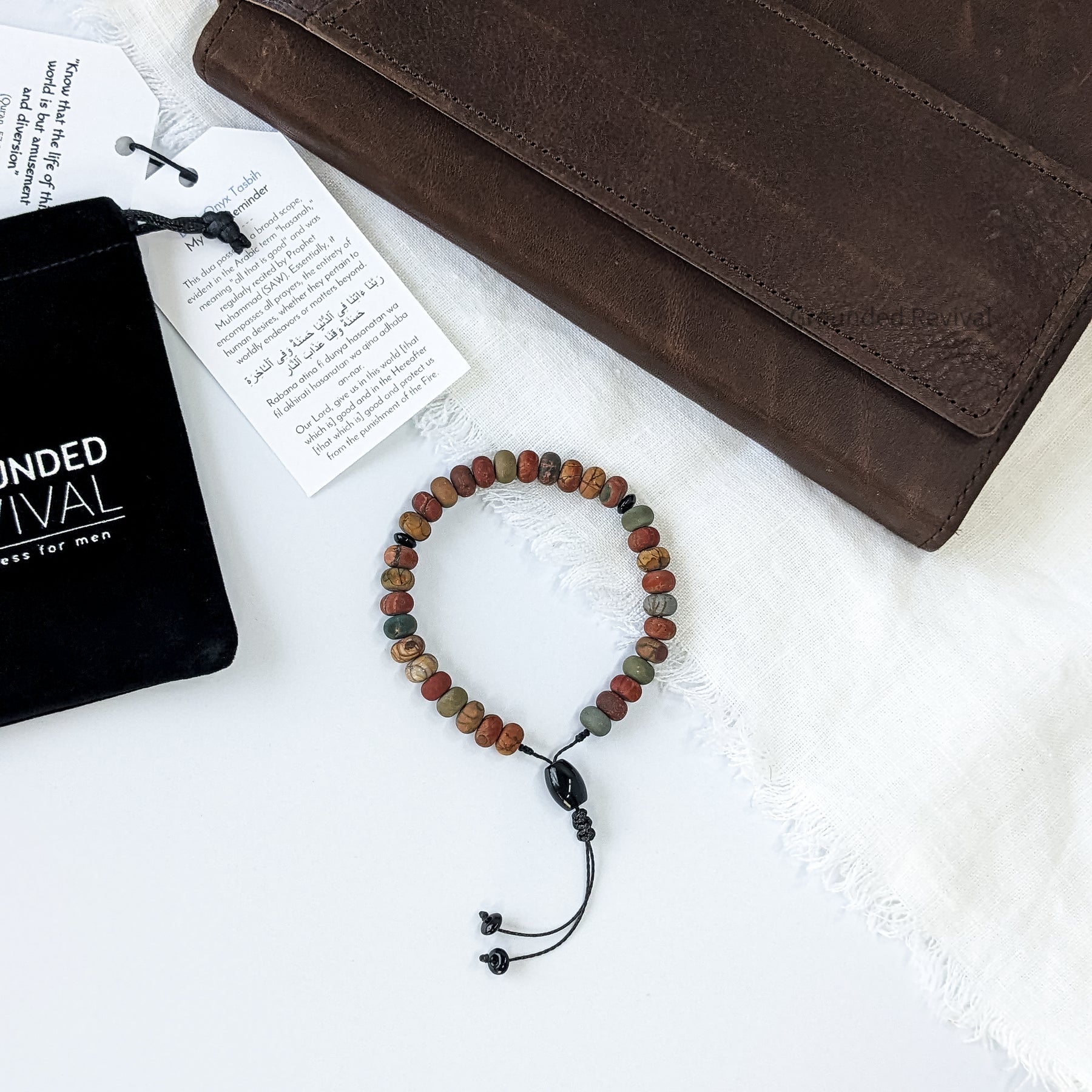- Includes a 'dua reminder' card and a Grounded Revival velvet bag